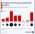 Na osnovu podataka prikazanih na grafikonu koji prikazuje broj slučajeva influence prema službenoj statistici Instituta Robert Koch, može se uočiti “zanimljiv” trend tijekom posljednjih nekoliko godina. Grafikon pokazuje ukupan broj slučajeva influence i smrtnih ishoda od sezone 2015/16 do 2022/23.