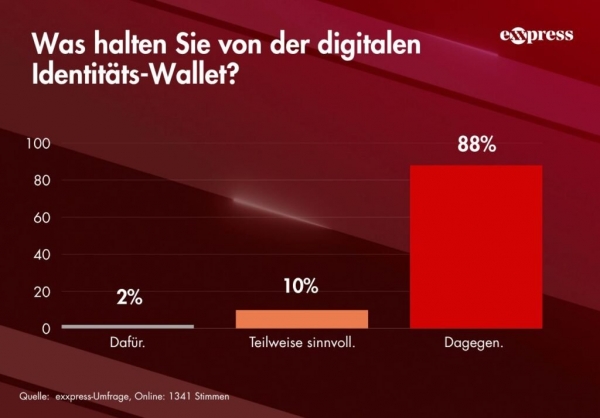 U isto vrijeme, u urbanim središtima EU, planirana infrastruktura digitalnog identiteta – tzv. Digital Identity Wallet – nailazi na masovni skepticizam. Nedavna anketa austrijskog expressTV-a o planiranom uvođenju digitalnog ID novčanika dala je potpuno jasnu sliku javnog mnijenja. U glasanju je sudjelovalo ukupno 1341 korisnika, od čega je tek 2 posto bilo za uvođenje, 10 posto neodlučno, a čak 88 posto protiv uvođenja digitalnog ID novčanika.