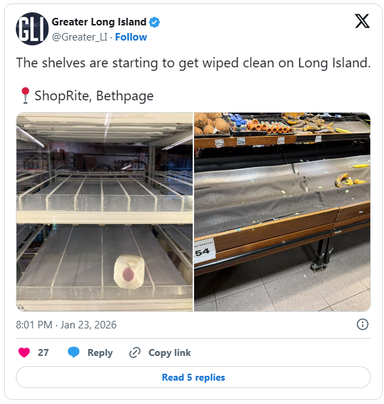Empty shelves have spread across the nation as millions of Americans prepare for the incoming winter storm. From Texas to Pennsylvania, many have been trying to track down the essentials now to avoid driving after the snow.