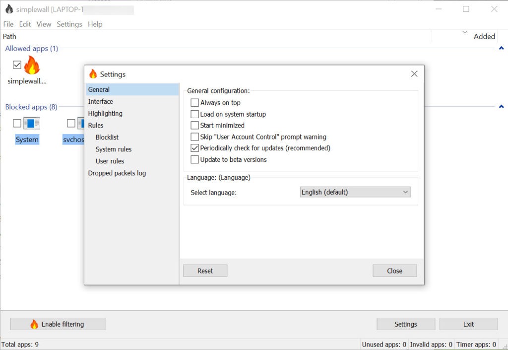 But with simplewall, you’ll be able to set your filters for the Windows Filtering Platform and override the generic rules and filters that are set on WFP upon installation of your Windows operating system.