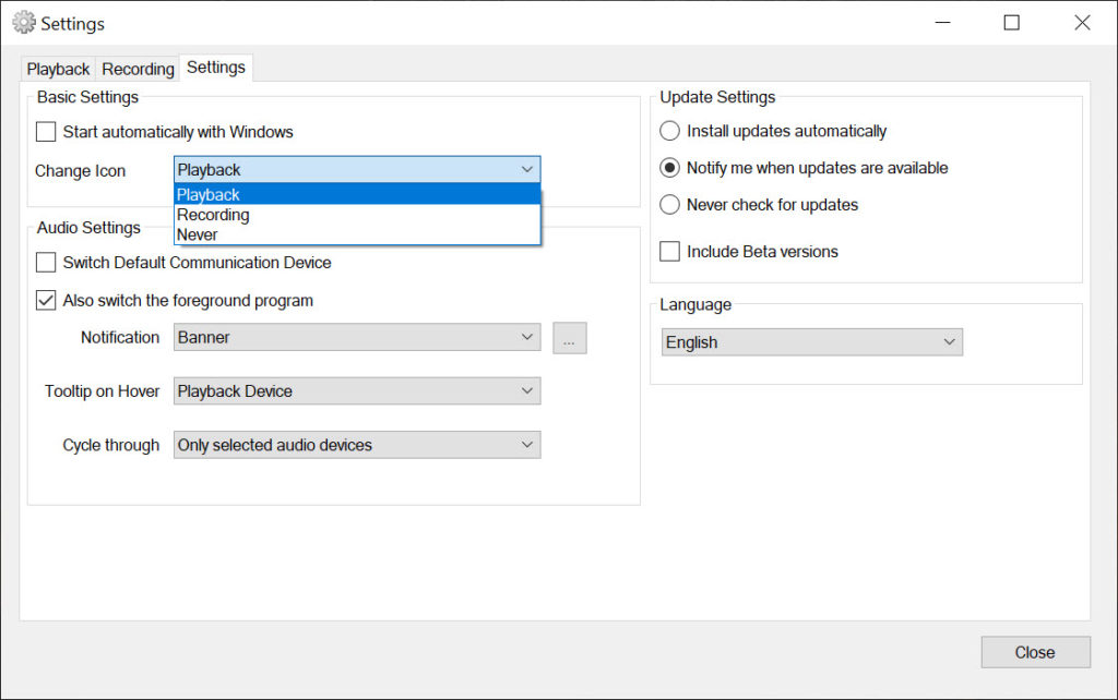 This software does all this by simply pressing a hotkey combination of your choice. It’s a small application and very convenient for making fast changes between the sound devices connected to your system.