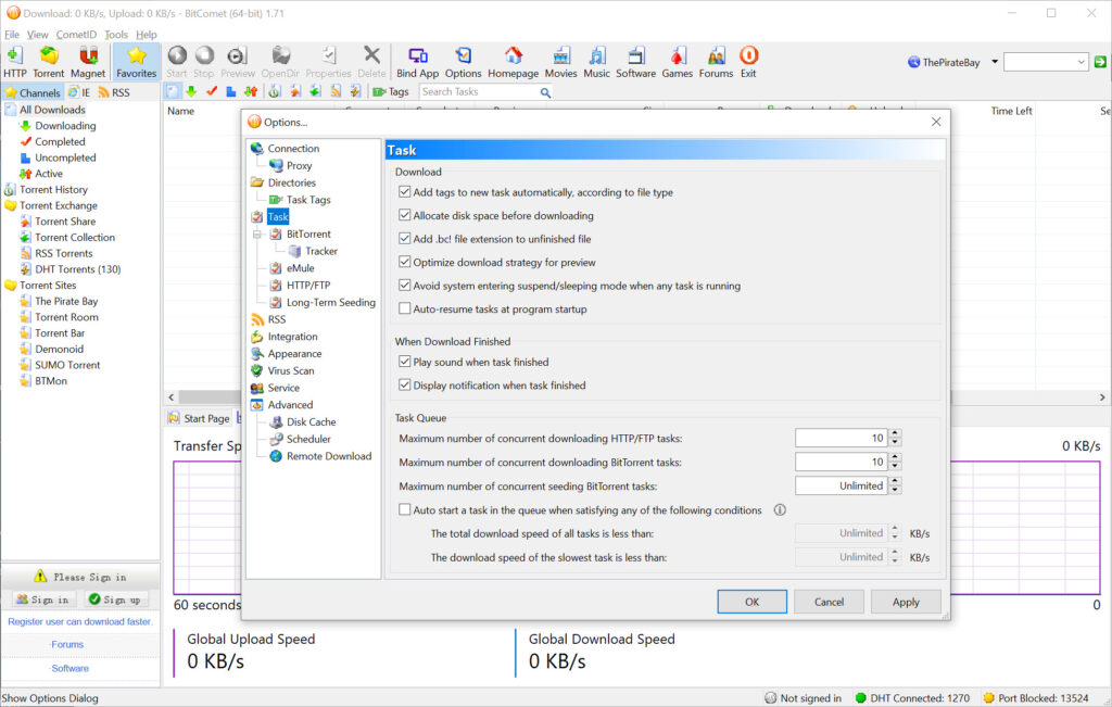 One of BitComet’s standout features is its support for both BitTorrent and HTTP/FTP downloads. This versatility allows users to manage different types of downloads from a single application. Additionally, BitComet integrates a built-in media player, enabling users to preview videos before the download is complete, which can be particularly useful for users who want to quickly assess the content of their downloads.