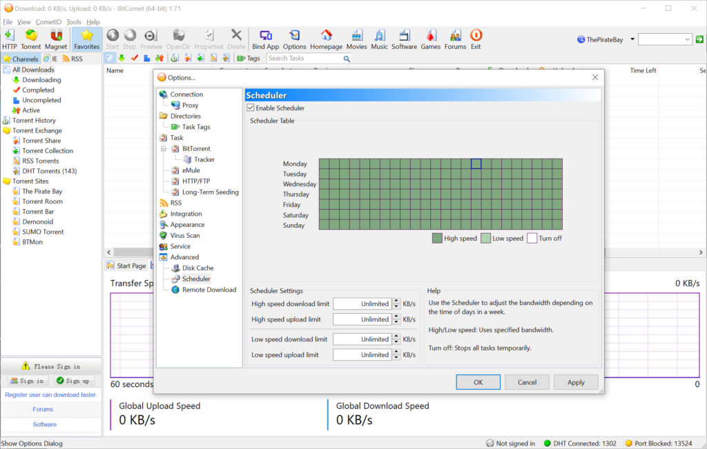 - Scheduled Downloads: Lets you start or stop downloads at specific times.
