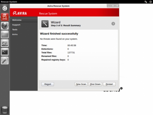 Once the Avira Rescue System file has been downloaded, a CD/DVD or a bootable USB drive should be created. Thereafter, the infected computer has to boot from the created medium in order to perform the clean-up process.