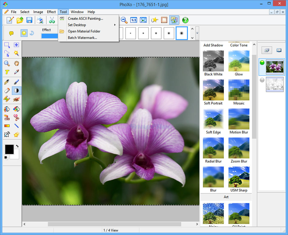PhoXo is an image editing software that supports layers, batch processing, image masks, filters and more than 50 special effects, as well as a variety of useful editing tools for cropping, retouching, color adjustments and more.