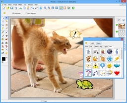 The program can be used to edit and enhance your photos with traditional methods like sharpening, level adjustments, red-eye correction etc., and you can use the effect tools to get creative and insert shadow text, speech bubbles, fade effects, gradients, image frames, clipart objects and more.