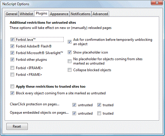 No is a Firefox extension that enables you to interactively block , , Flash and other plug-ins with the click of a button. You can choose to temporary block or allow s on the current sites and also allow your trusted sites to be exclude from any blocking action.