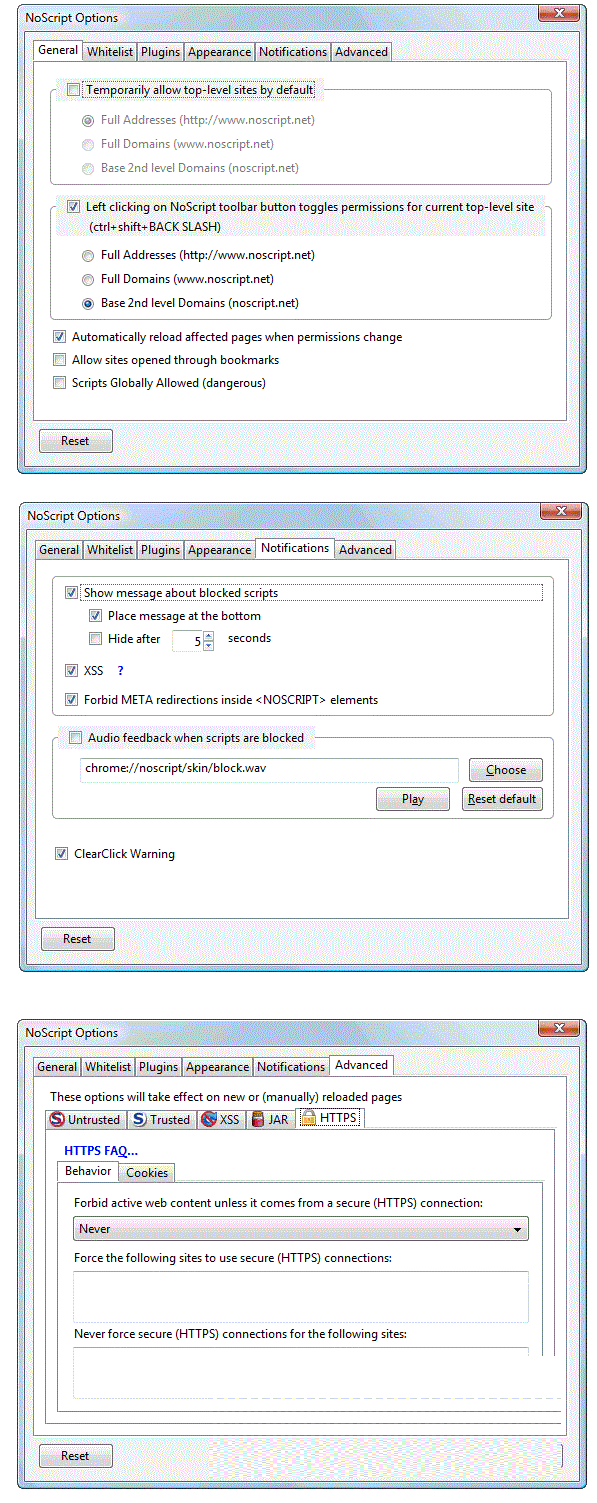 No provides detailed configuration options that allow to choose which type of content should be blocked, how to notify you and what actions to take. You can also configure a WhiteList of allowed sites, set restrictions for HTTPS pages, prevent Cross-Site ing (XSS) attacks and more.