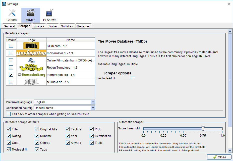 Other features include a powerful search option, downloading of movie trailers and subtitles, manual editing of meta data, organizing into movie sets, and more.
