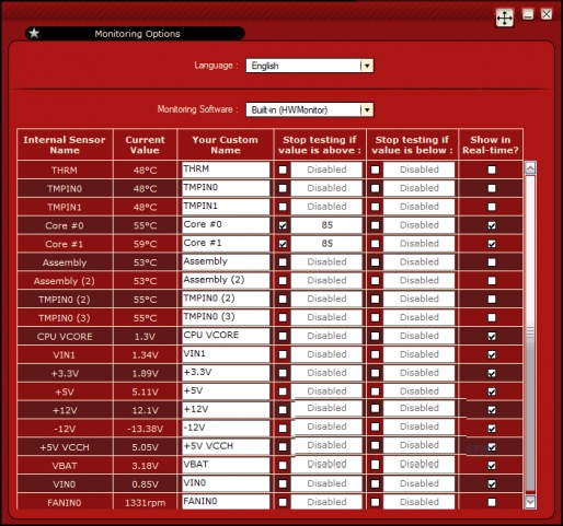 The built-in system monitoring features (using HWMonitor) can be customized to automatically stop the test if certain values exceed a specified threshold (e.g. if your CPU is overheating).