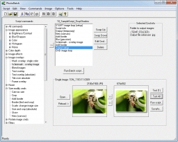 A batch may be run on a single image, on a folder, or on a list of files and folders. Includes 91 commands, 68 commands that change the image in the image buffer and 23 output and supports 10 image file formats (JPEG, BMP, GIF, TIFF, PNG, PCX, TGA, WMF, EMF, PSP) plus digital camera raw formats (Canon, Nikon, Kodak, FUJI, Olympus, Pentax, Sony).