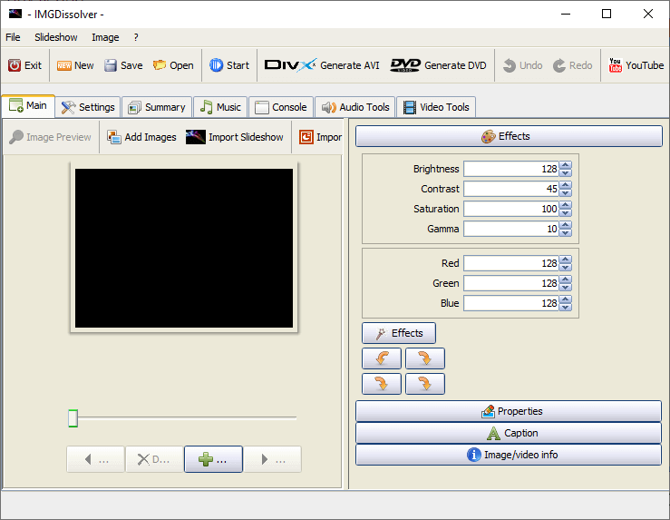 IMGDissolver is a easy to use slideshow generator to create a video slideshow from your photos and save them as DivX or DVD fomats that can then be played back later on a DVD player.