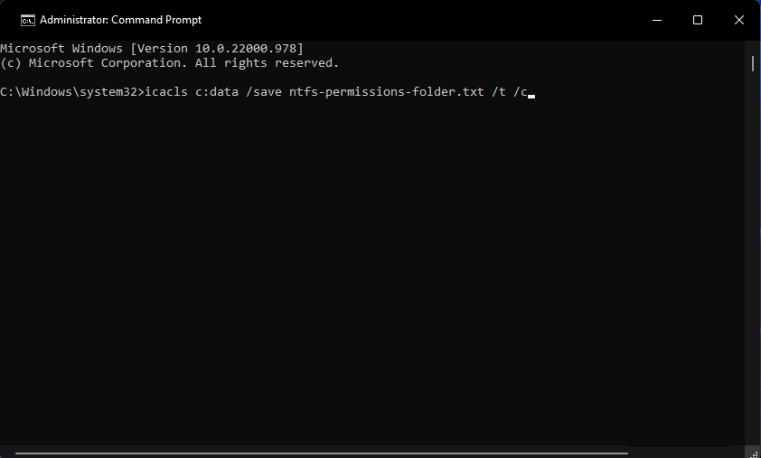| icacls c:data /save ntfs-permissions-folder.txt /t /c |