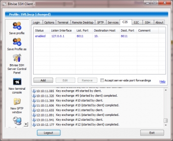 Bitvise SSH Client (a.k.a. Tunnelier) is a powerful tunneling (port forwarding) client that works with any Secure Shell server. It offers tabs for Client -to-Server forwarding and Server-to-Client forwarding. ..