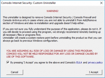 This tool should only be used if you are having difficulties removing Comodo products using the traditional 'Add/Remove' programs method. Users who simply wish to uninstall are strongly advised ..