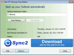 Safe PST Backup (Free Edition) enables you to backup your Outlook PST files, including all your email messages, contacts, calendar entries and everything else. The program actually copies your entire PST file into the backup folder you specify and uses incremental backups thereafter. You can run the backups manually or automatically every few hours or days. Safe PST Backup will run automatically in the background, even if Outlook is open.