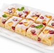 Pripravljeno zmes vlijemo v pekač, ki smo ga obložili s papirjem za peko. Po vrhu nežno položimo sadje (ne mečite ga na zmes, saj bo potonilo).