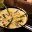 5 Z metlico stepemo jajca, dodamo smetano, muškatni orešček, sol in poper. Vmešamo še podušene šparglje, panceto in nariban edamec. Nadev zlijemo na testo, na vrh položimo sveže cele šparglje in potresemo s parmezanom. Pečemo na 180°C okoli 45 minut.
