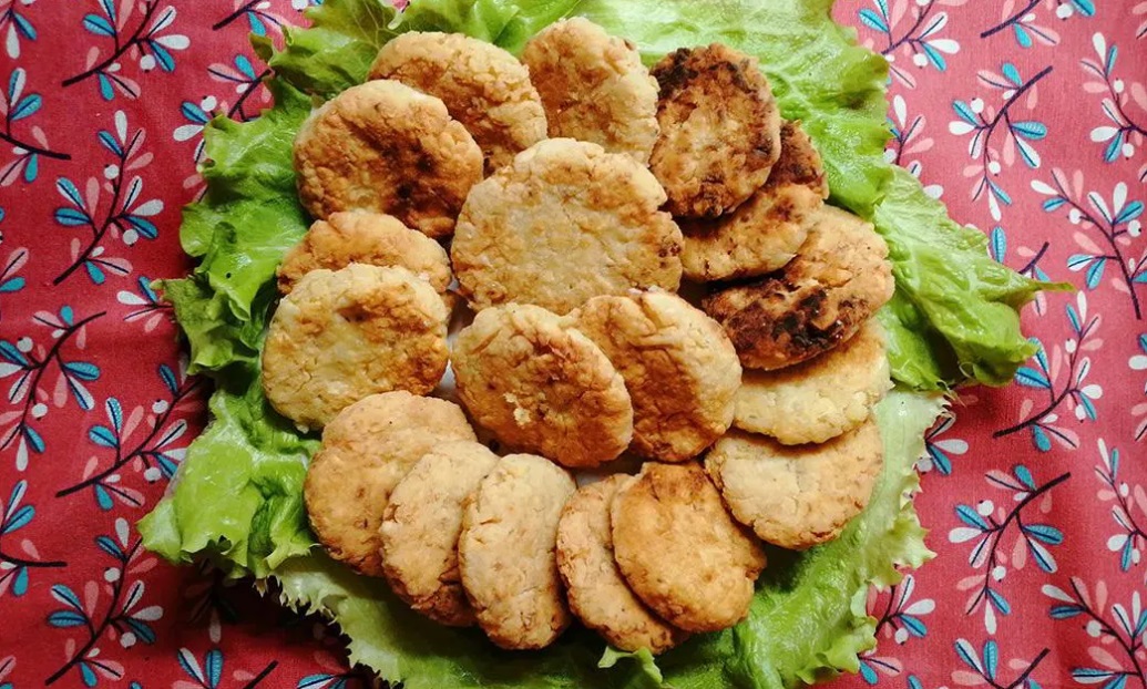 3 Pripravimo si kupček moke in nanjo damo kroglico pripravljene mase – mi smo kroglice naredili iz zvrhane jušne žlice čičerike. Žogico povaljamo in jo med rokami sploščimo, da postane ploščata. Olje v ponvi segrejemo. Olja naj bo toliko, da pokrije samo polovico polepete, ko pa je zlato pečena obrnemo, jo obrnemo in spečemo še na drugi strani.