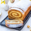 Pečeno potico vzamemo iz pečice in jo nekaj časa pustimo v pekaču. Nato jo obrnemo na desko in potresemo s sladkorjem v prahu.