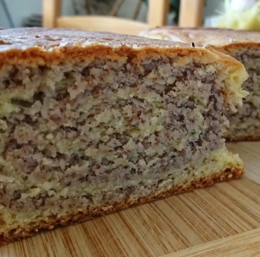 Testo stresemo na pomokano desko, naredimo hlebček, ga pomokamo po vrhu, pokrijemo s prtičkom in pustimo vzhajati eno uro, da naraste na dvojno količino. Medtem pripravimo nadev.