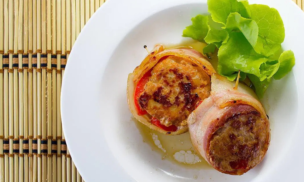 Pečico predgrejemo na 200 °C. Meso operemo in osušimo s papirnato brisačo. Ribico narežemo na 12 rezin, posolimo in popopramo. Vsak medaljon ovijemo s slanino, ki jo pritrdimo z lesenim zobotrebcem.