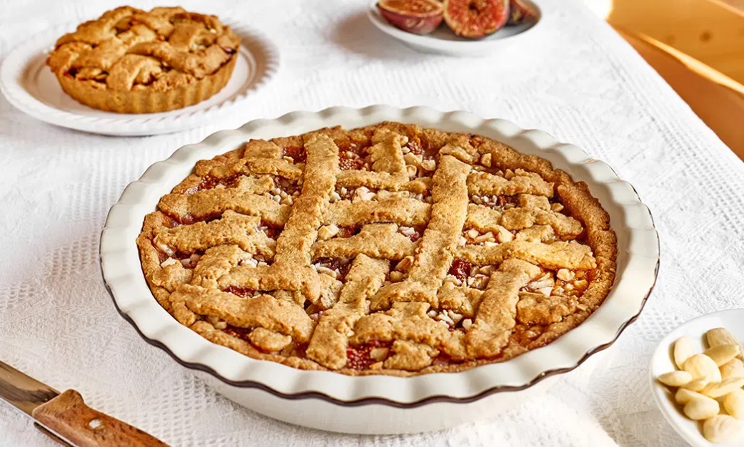 Figova pita in njen okusFigova pita je čudovito sladka, z nežno kislostjo od limoninega soka in s svežino jabolk. Testo je hrustljavo in rahlo masleno zaradi masla in mletih mandljev, kar dopolnjuje bogat nadev iz fig, jabolka in mandljev. Med in sladkor dodata sladkost, ki se lepo prepleta s sadnimi okusi. Celotna kombinacija ustvarja harmoničen in privlačen okus. Figova pita je posebna iz več razlogov: - Edinstven nadev:Kombinacija fig, jabolk in mandljev za nadev je edinstvena. Figove pite niso tako pogoste in dodatek jabolk in mandljev prinese kompleksnost okusa.