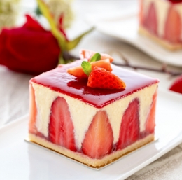 Jagodne rezine ali fraisier torta. Fraise v francoščini pomeni jagoda in te so vsekakor zvezde naše sladice. Slastnim jagodam dodamo še vanilijevo kremo ter biskvit in že se lahko sladkamo.