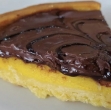 Pripravimo čokoladno omako. Vse sestavine damo v kozico in med mešanjem nad soparo raztopimo.
