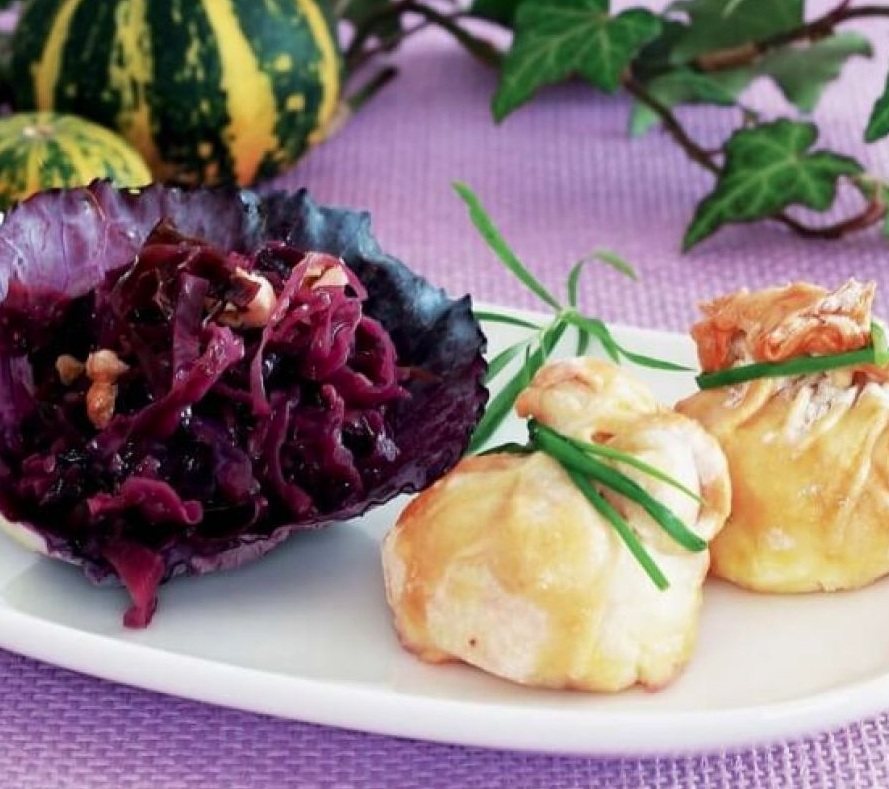 Za pravo jesensko poslastico bomo rdeče zelje pospremili s culicami s krompirjevim nadevom.