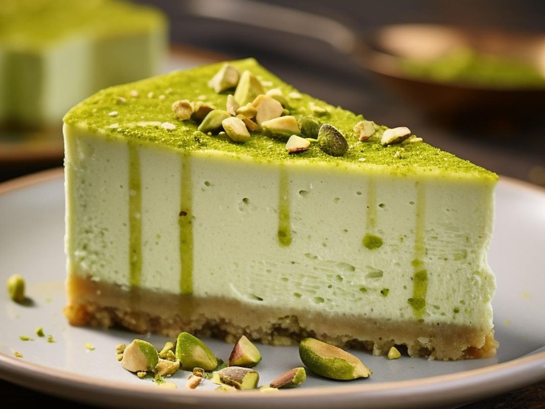 Ta cheesecake brez peke ni le čudovit na pogled, temveč je tudi okusen kontrast običajnim sirnim tortam. S hrustljavo podlago, svilnato sredico in prepoznavno zeleno kremo od pistacij je ta torta popolna izbira kadar koli želite navdušiti svoje goste z nekaj drugačnim.