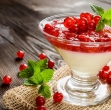 Maso nalijemo v posodice in na sredino potopimo jagodo.Posodice postavimo v hladilnik.