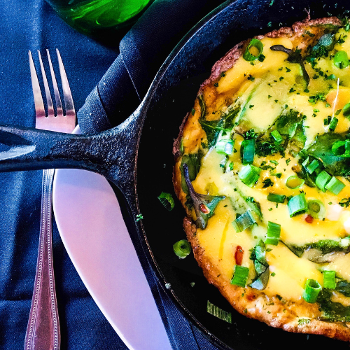 6 x Jajce 1 x Čebula 300 g Šampinjoni 2 jedilni žlici Olje sončnično 100 g Panceta 1 x Strok - česen 0.5 šopka Peteršilj Muškatni orešček Poper Sol 30 g Sir