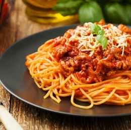 3 V velikem loncu zavremo rahlo osoljeno vodo in v njej skuhamo špagete, ki jih odcedimo in damo v servirno posodo.