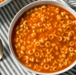 700 g paradižnikov 1 čebula 1 strok česna 1 stebelna zelena, sesekljana 500 ml kokošje jušne osnove 80 g jušnih testenin (zvezdice, obročki, črke, …) 1 žlica oljčnega olja sol poper peteršilj