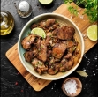Zalijemo z vinom ali vodo, da dobimo okusno omako, pokrijemo in na zmerni temperaturi dušimo še 5 minut, odkrijemo in mešamo, da povre odvečna tekočina, tik pred koncem jih solimo, popopramo in postrežemo s krompirjem v kosih. Jetrca morajo ostati mehka in sočna, na sredini pa ne smejo več biti krvava.