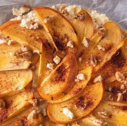 Kakijevo pecivo s skuto je mešanica nežnega testa, obogatenega z maslom in vanilijo, ki se popolnoma ujema s kremastim nadevom iz skute in sladkorja.
