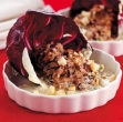 Na olju popražite čebulo, da postekleni, nakar jo zaliješte z mlekom in sladko smetano.