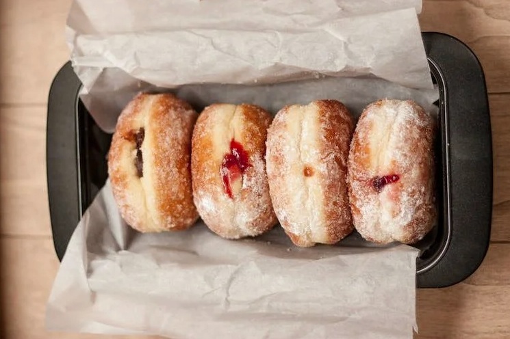 Pred serviranjem potresite krofe s sladkorjem v prahu.