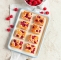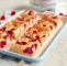 Počasi z lopatko vmešamo po delih sneg in prelijemo v dobro namaščen pekač. Potresemo z malinami in sladkornimi hrustljavčki, če smo se odločili zanje.