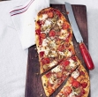 Omako pripravimo tako, da vse sestavine zmešamo. Pečico segrejemo na najvišjo mogočo temperaturo. Velik pekač in delovno površino rahlo posujemo z moko. Testo razdelimo na dva dela in ga ne gnetemo več, samo razvaljamo ga v dve podolgovati 30 cm dolgi obliki in ju damo na pekač.