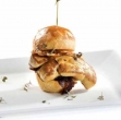 Buhtelj prerežemo, obložimo z marmelado, nanjo položimo jetra in hrustljave rezine slanine ter posujemo s krešo.