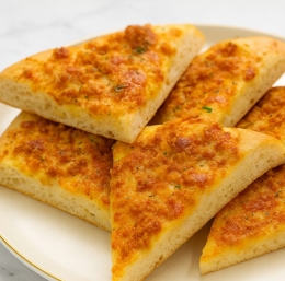 Pečeno pogačo narežite na kose in postrezite še vročo.