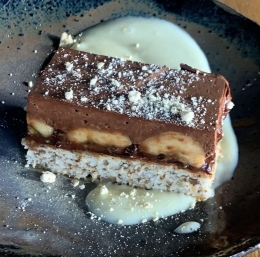 Sladica, ki se je bodo razveselili mali in veliki sladkosnedi, je hkrati tudi izvrsten način, da porabite beljake. Odličen lešnikov biskvit v kombinaciji z lešnikovim namazom, bananami in čokoladnim moussom. Je lahko še kaj boljšega?