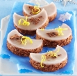Ko je pecivo pečeno, ga še vročega prelijemo s pripravljenim prelivom. Takoj začnemo z izrezovanjem lunic s kozarcem, dokler je testo še mehko.