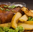 Sočna rebrca iz pečice na kislem zelju s krompirjem in hrustljavo kožo, popolna klasika.
