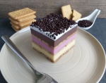 Po enakih navodilih pripravimo še borovničev puding, ga takoj zlijemo čez piškote in prekrijemo s plastjo namočenih piškotov.