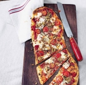 Pica s pestom, jajčevci in kozjim sirom