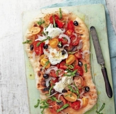 Česnova pica s paradižnikom in mocarelo
