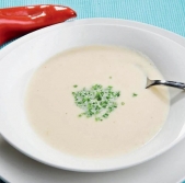 Kremna juha iz zelene z ovčjim sirom in kruhki z bučnim oljem